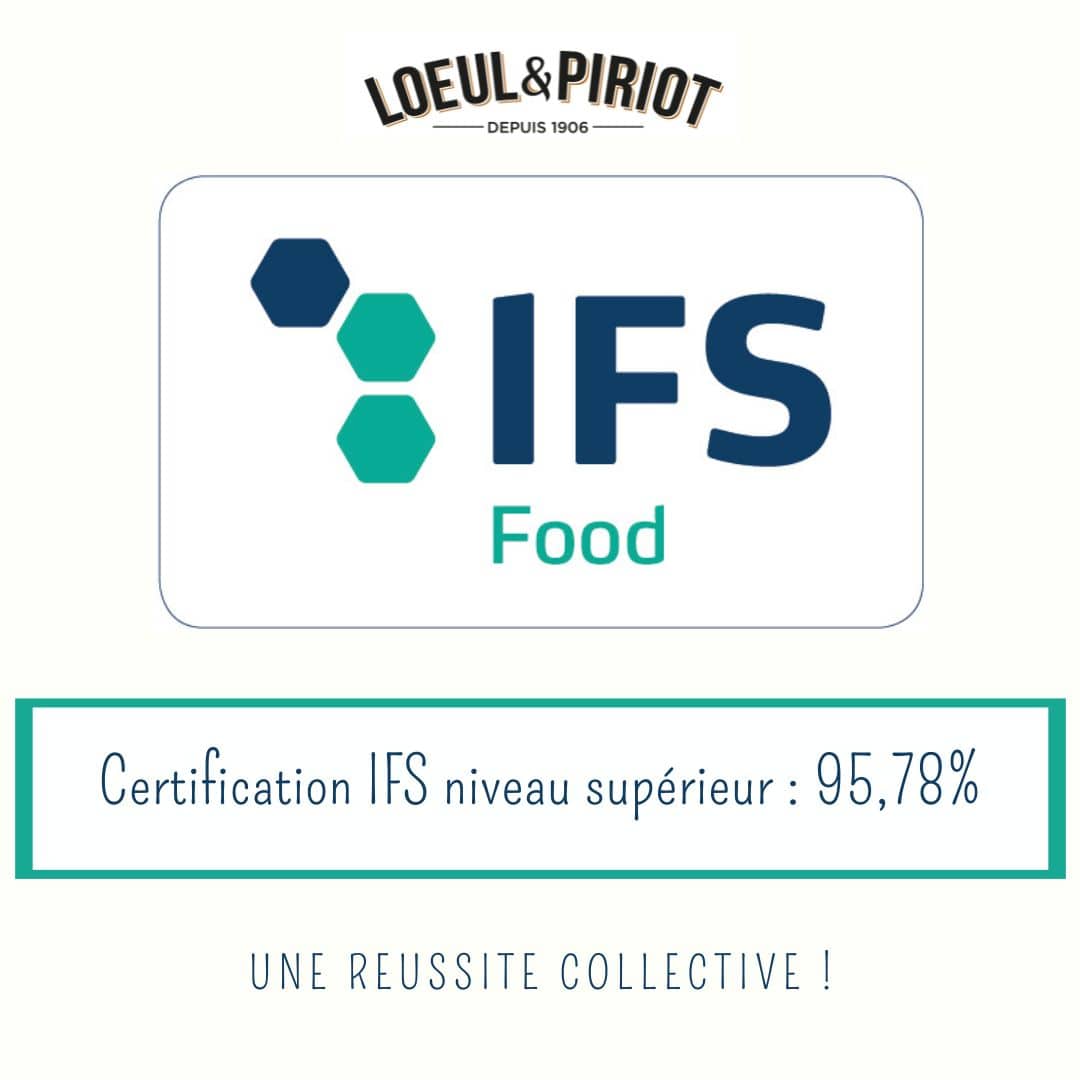 Excellente nouvelle pour LOEUL & PIRIOT ! Nous venons d’obtenir la certification IFS – niveau supérieur, avec l’excellent score de 95,78 %. Félicitations à toutes nos équipes pour leur rigueur, leur professionnalisme et leur engagement. Cette réussite confirme notre ambition : offrir chaque jour des produits sûrs, contrôlés et de haute qualité. Une réussite collective !